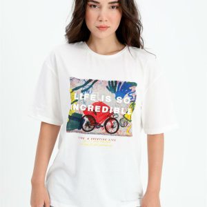 T-shirt Bisiklet Yaka Desenli Kabartma Yazılı –