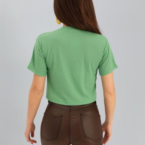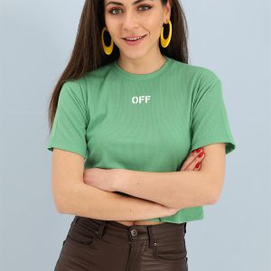 Tshirt Crop Bisiklet Yaka Off Yazılı – Yeşil