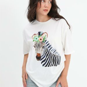 T-shirt Bisiklet Yaka Desenli Kabartma Yazılı –